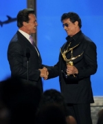 Arnold Schwarzenegger y Sylvester Stallone acudieron juntos a un hospital luego de un rodaje. Supuestamente Schwarzenegger recibía atención por una lesión en el hombro.
